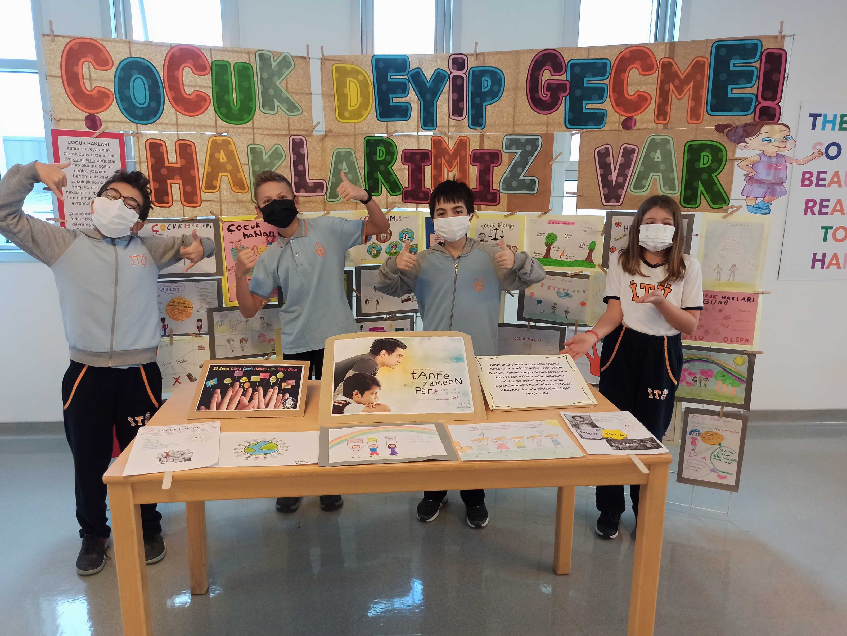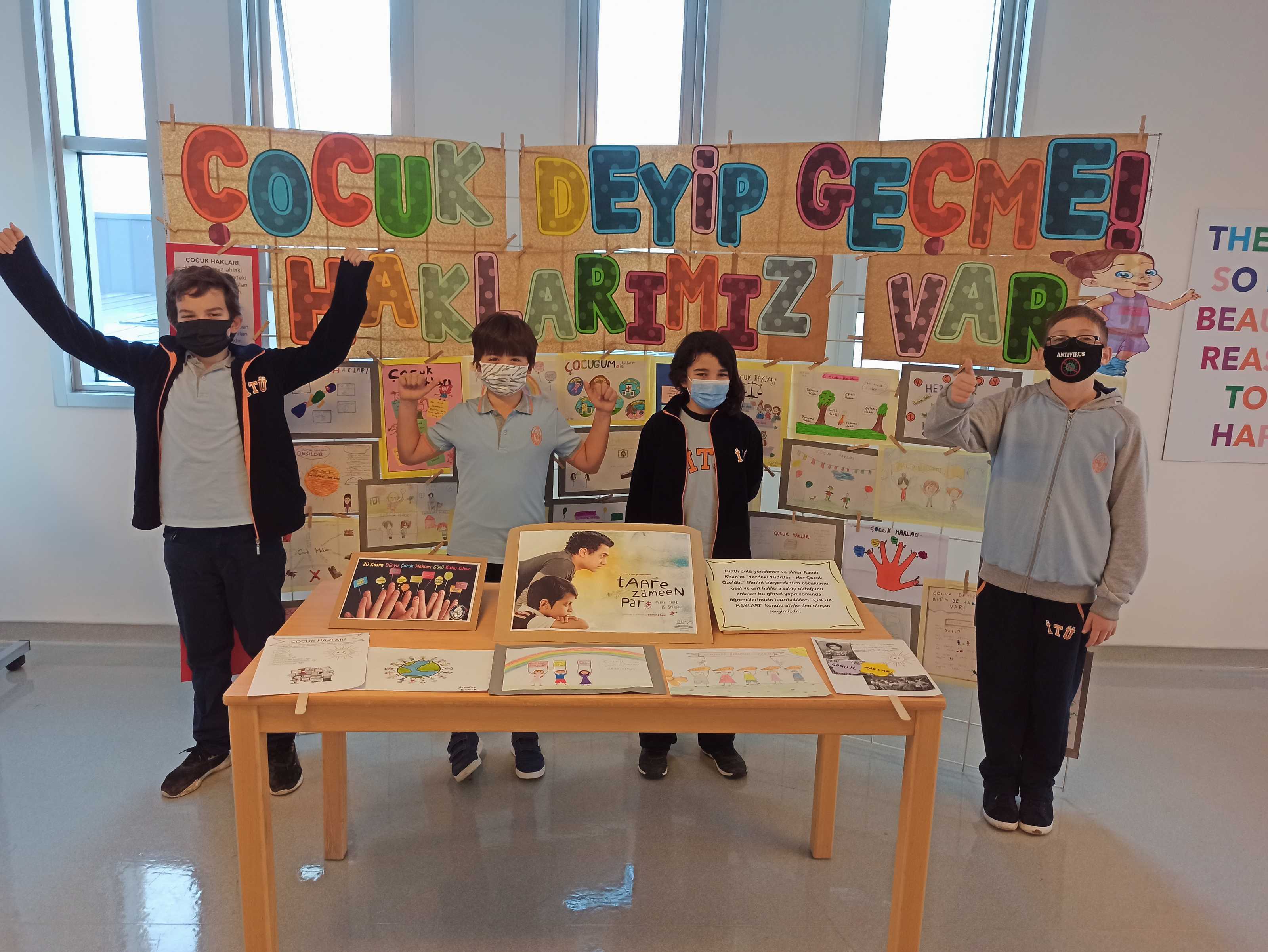 Öğrencilerimiz derste öğrendikleri bilgiler ışığında modern dünyada her bireyin sahip olduğu en temel haklarını “Çocuk Deyip Geçme” “Haklarımla Varım” “Çocuk Hakları” teması ile ön plana çıkardılar. 20 Kasım 1989’da Birleşmiş Milletler Genel Kurulunda kabul edilen Çocuk Hakları Sözleşmesi’nde yer alan maddelerden yola çıkarak haklarını güncel hayatta nasıl kullanmaları gerektiğini öğrendiler.
